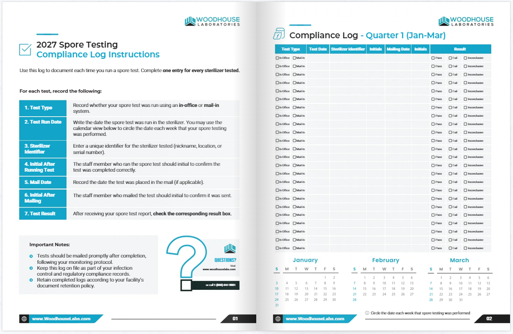 Perfect for practices using mail-in or in-office biological indicator services, this quarterly format supports routine monitoring while keeping documentation concise and easy to maintain. Keep logs on hand as part of your infection control records and be prepared for audits, inspections, or internal reviews.