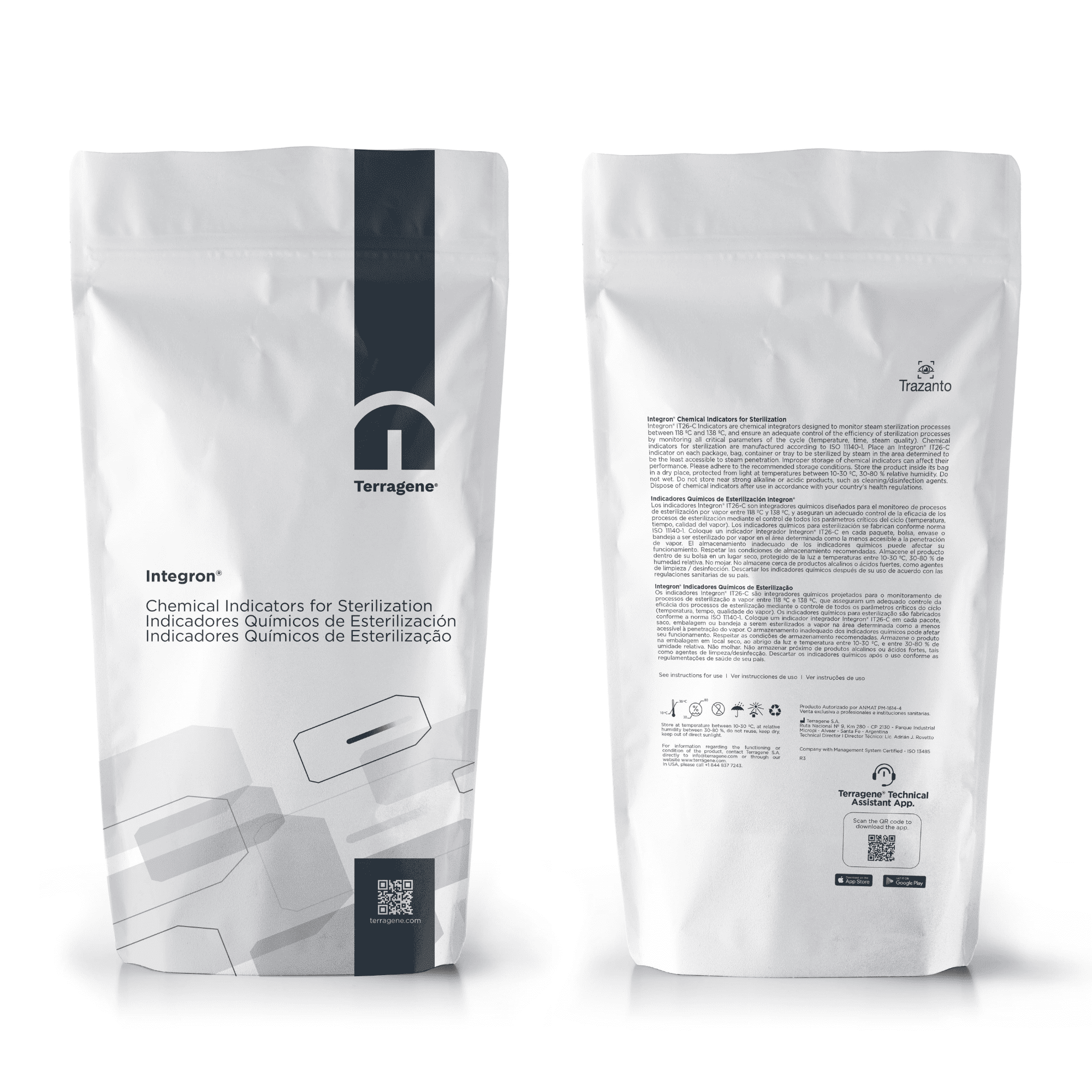 2. Place a Integron® IT26-C indicator in each pack, peel pouch, container system or tray to be steam sterilized in the most inaccessible area to sterilizing agent.